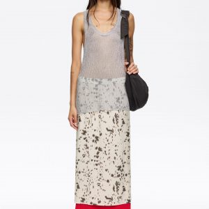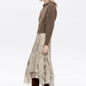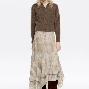Taupe Snake Asymmetric Pleated Skirt
