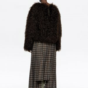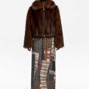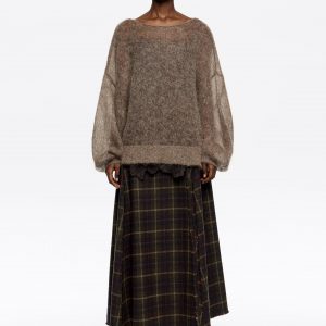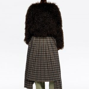 Brown Checked Asymmetric Pleated Midi Skirt