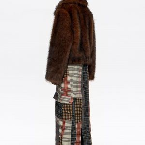 Brown Patchwork Straight Midi Skirt