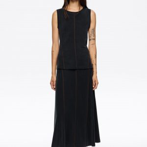 Washed black cupro midi skirt with contrast stitching.in SkirtsSku: pljskirt_0104