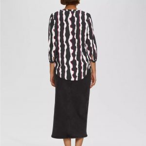 Black and white printed blouse with a flattering V-neckline.in TunicsSku: PHJT222VNBW