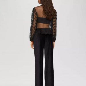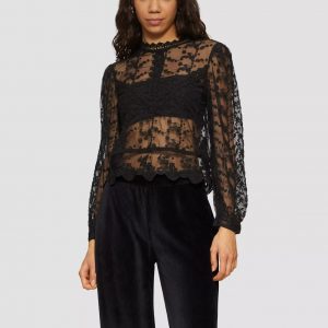 Sheer Lace Blouse with Stand-Up Collar in Black