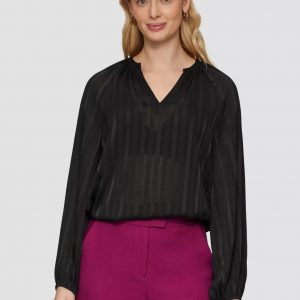 Black semi-sheer chiffon blouse with stripes and subtle sparkly thread.in TunicsSku: PHJT222SHSTR