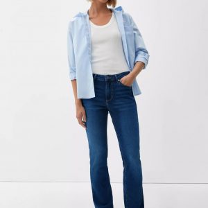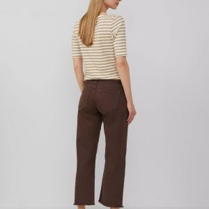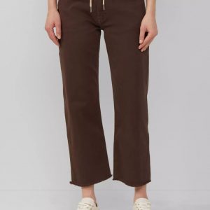 These ivory barrel-cut denim trousers feature a refined carrot silhouette with a low-rise fit and soft cotton-blend construction. Detailed with front zip pockets, patch back pockets, and stitched knee darts, they merge utility with elevated style. A front button-and-zip closure completes the design, making them a versatile choice for contemporary dressing.