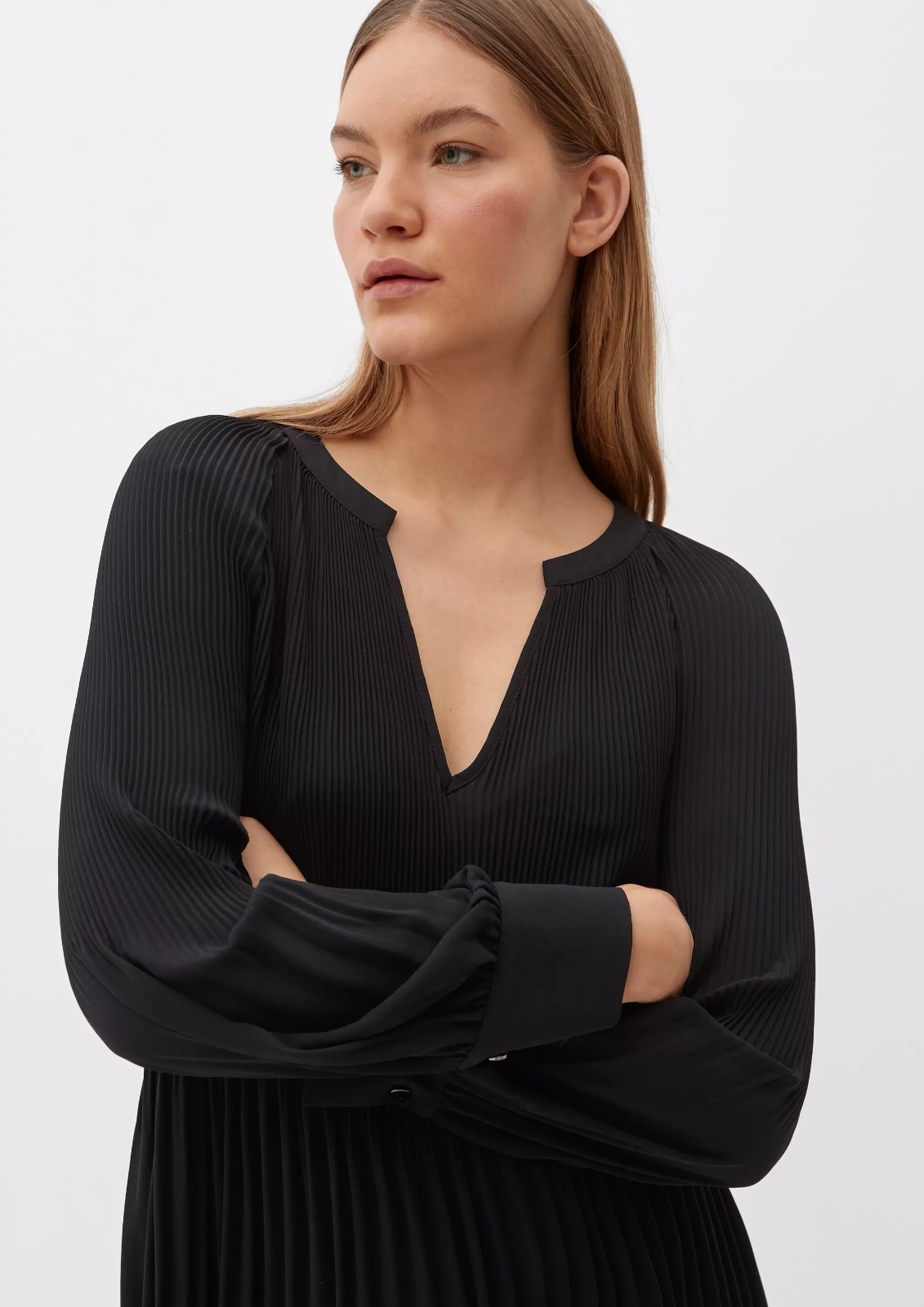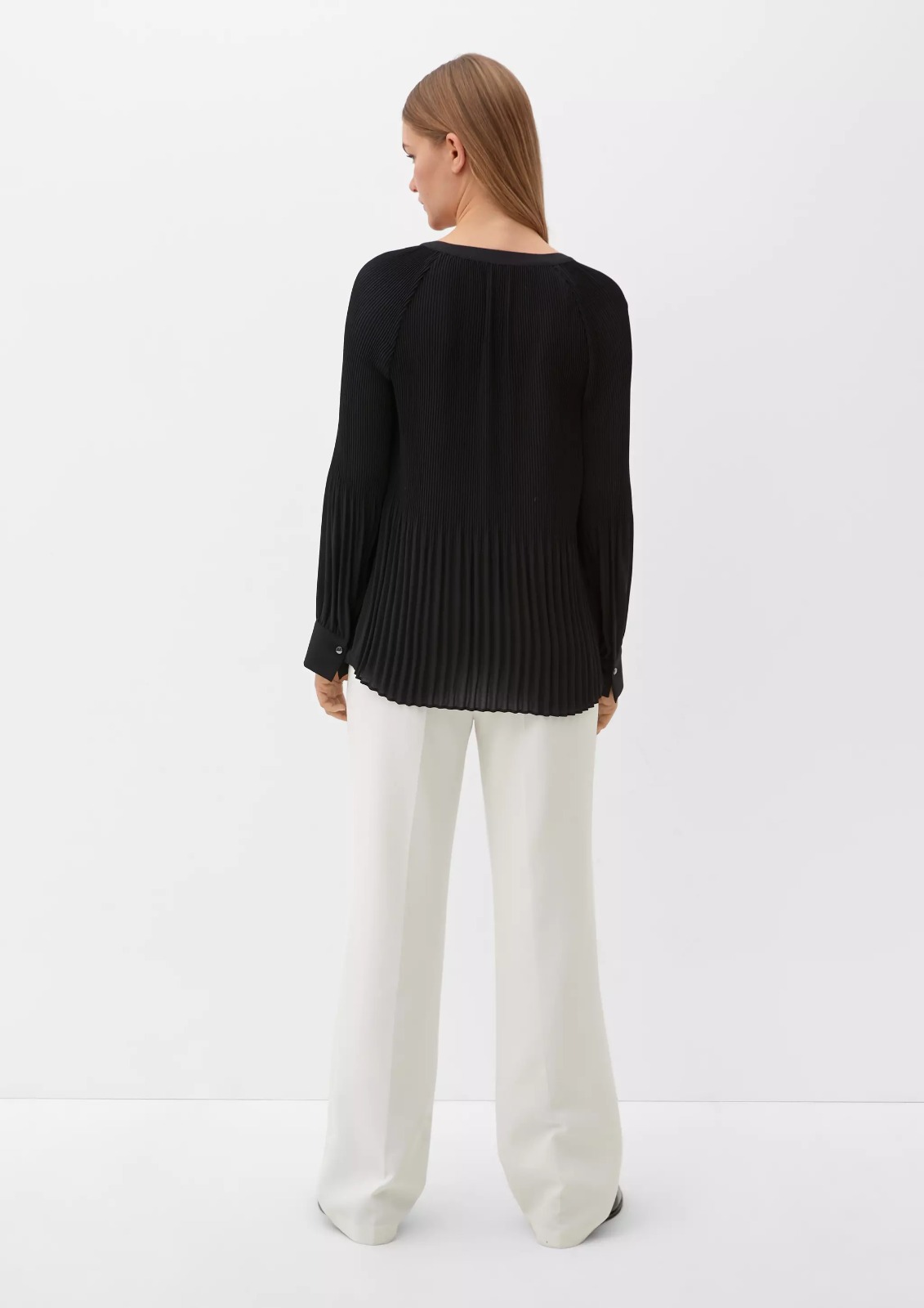 This blouse with a pleated texture is crafted to deliver structured elegance with everyday comfort. The pleated detailing adds dimension and sophistication, enhancing the overall silhouette while keeping the design minimal and refined. Made from comfortable fabric that drapes smoothly, it allows freedom of movement and long-lasting wear. Its tunic-inspired length offers balanced coverage, making it suitable for professional and semi-formal settings. The pleated texture elevates the look without being overpowering, ensuring versatility across different occasions. Pair it with tailored trousers or skirts for a polished office outfit or with smart casual bottoms for an elevated day look. Designed to maintain its neat appearance throughout the day, this blouse is a dependable wardrobe essential that blends comfort, structure, and timeless style.