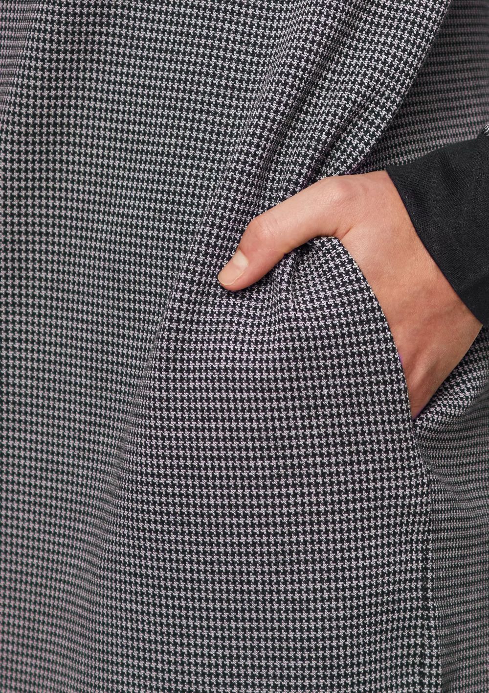 Dress with Houndstooth Pattern and Side Slit Pockets – Grey