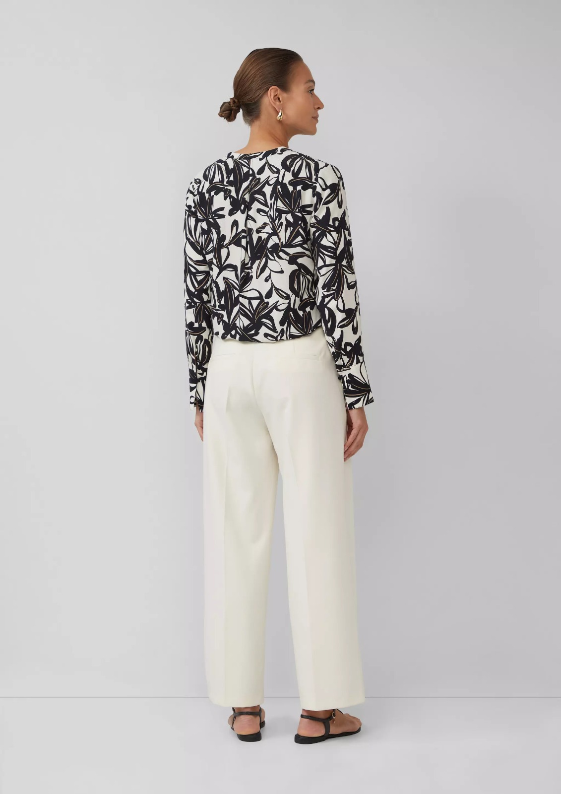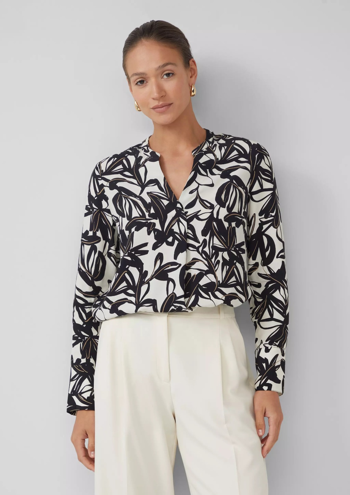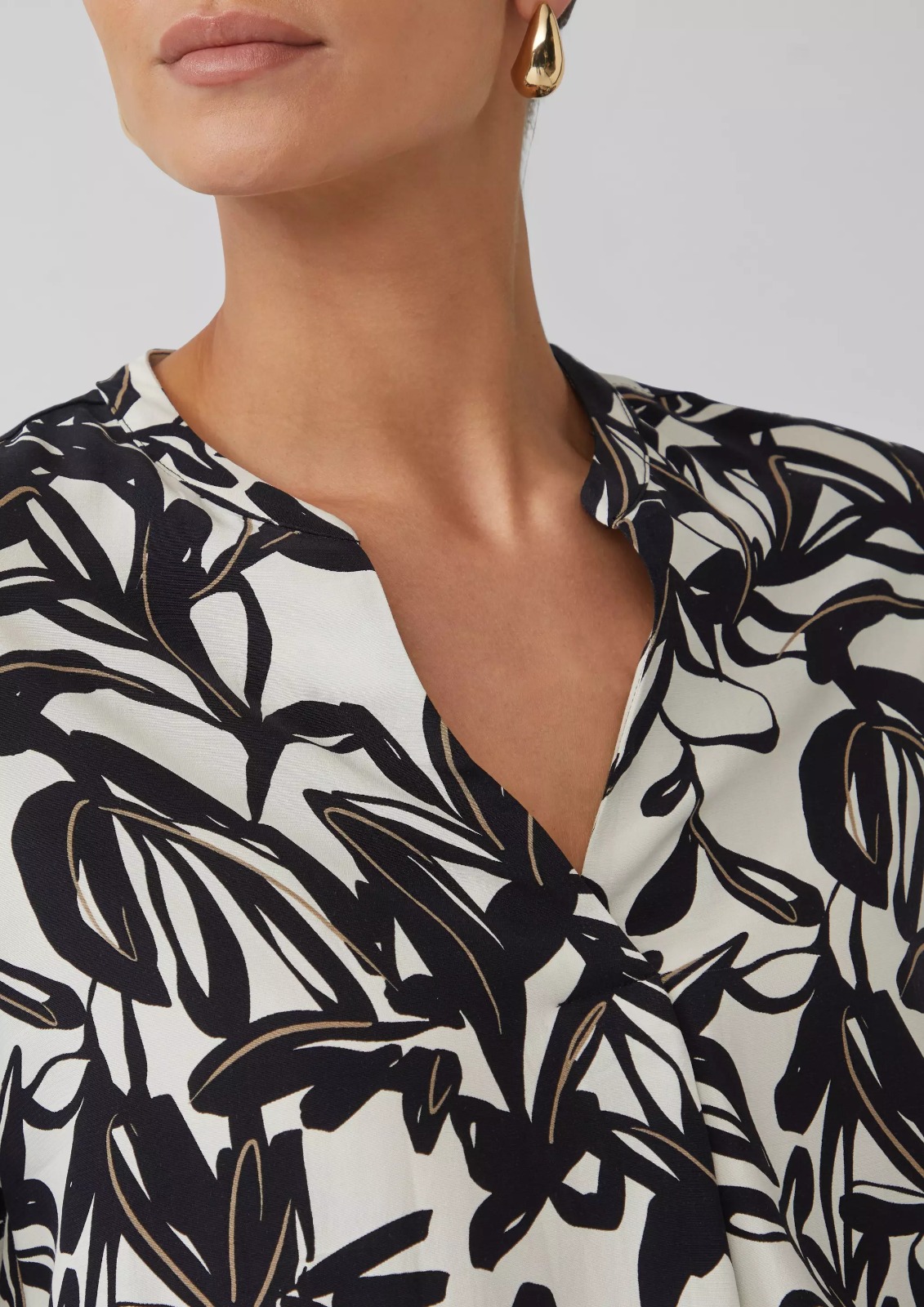 This printed V-neck blouse in a timeless black and white combination is designed to offer refined style with everyday comfort. Crafted from lightweight fabric, it drapes smoothly on the body, providing ease of movement and a polished appearance throughout the day. The classic V-neckline enhances the neckline and creates a balanced, flattering silhouette suitable for various body types. The monochrome print adds visual interest while remaining elegant and professional, making it ideal for office wear and smart casual occasions. Designed for long hours of wear, this blouse feels comfortable without compromising on structure. It pairs effortlessly with tailored trousers, skirts, or straight-fit pants, allowing versatile styling options. The black and white palette ensures easy coordination with both neutral and bold accessories. This blouse is a dependable wardrobe essential that blends timeless design, comfort, and modern printed appeal.