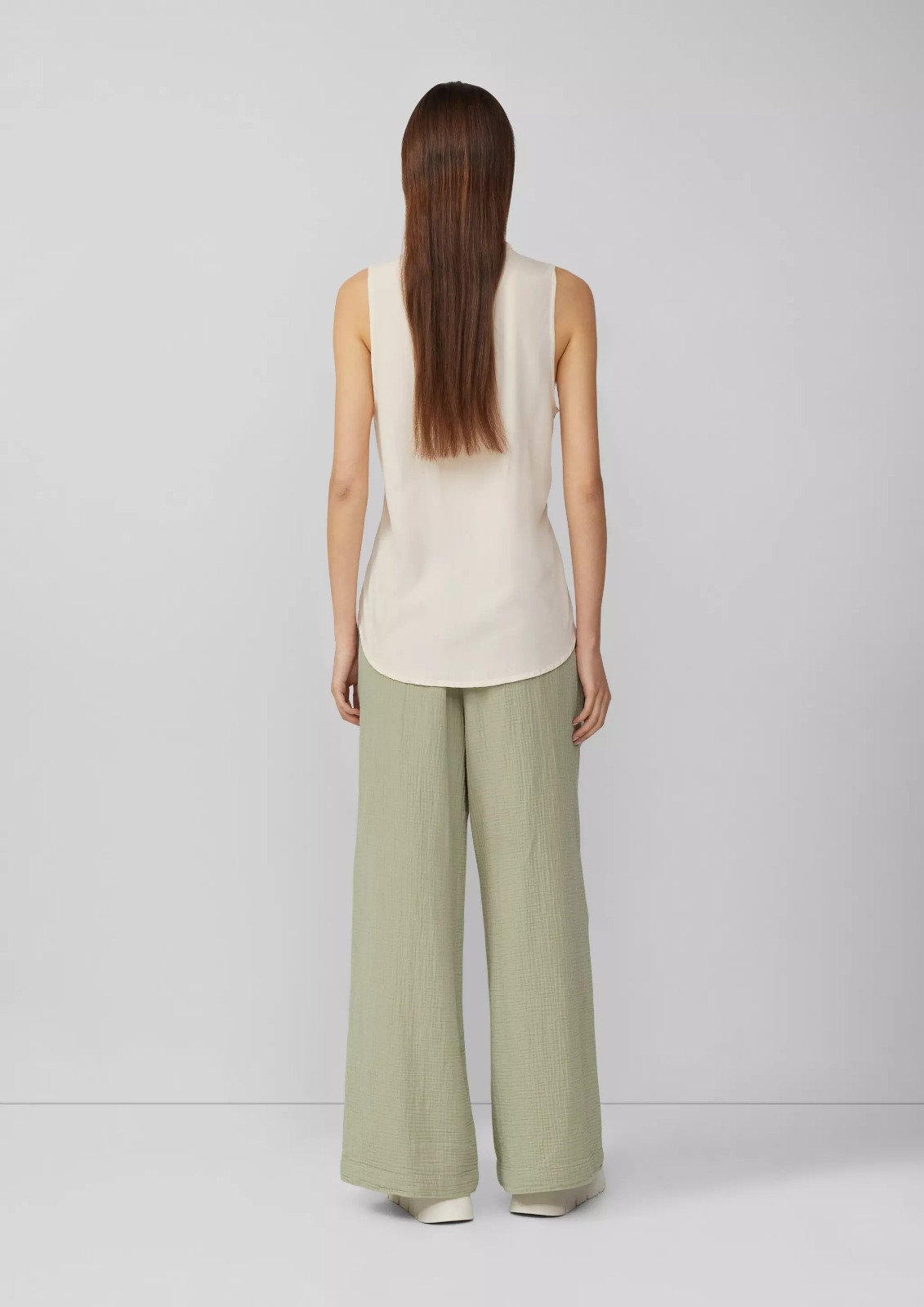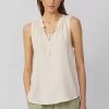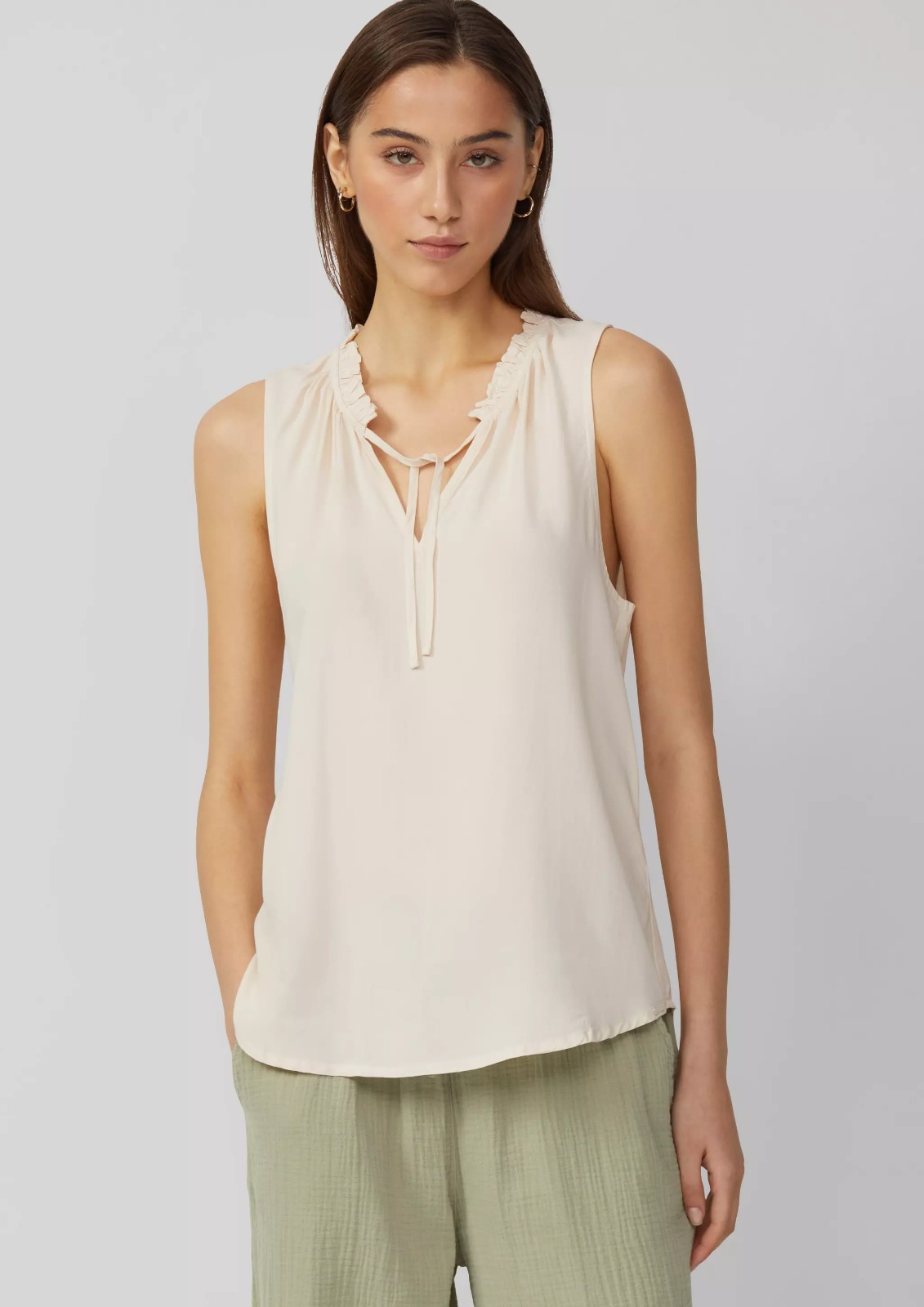 Soft, lightweight woven base with a semi-sheer look, perfect for warm weather and layering over inner camisoles if desired.