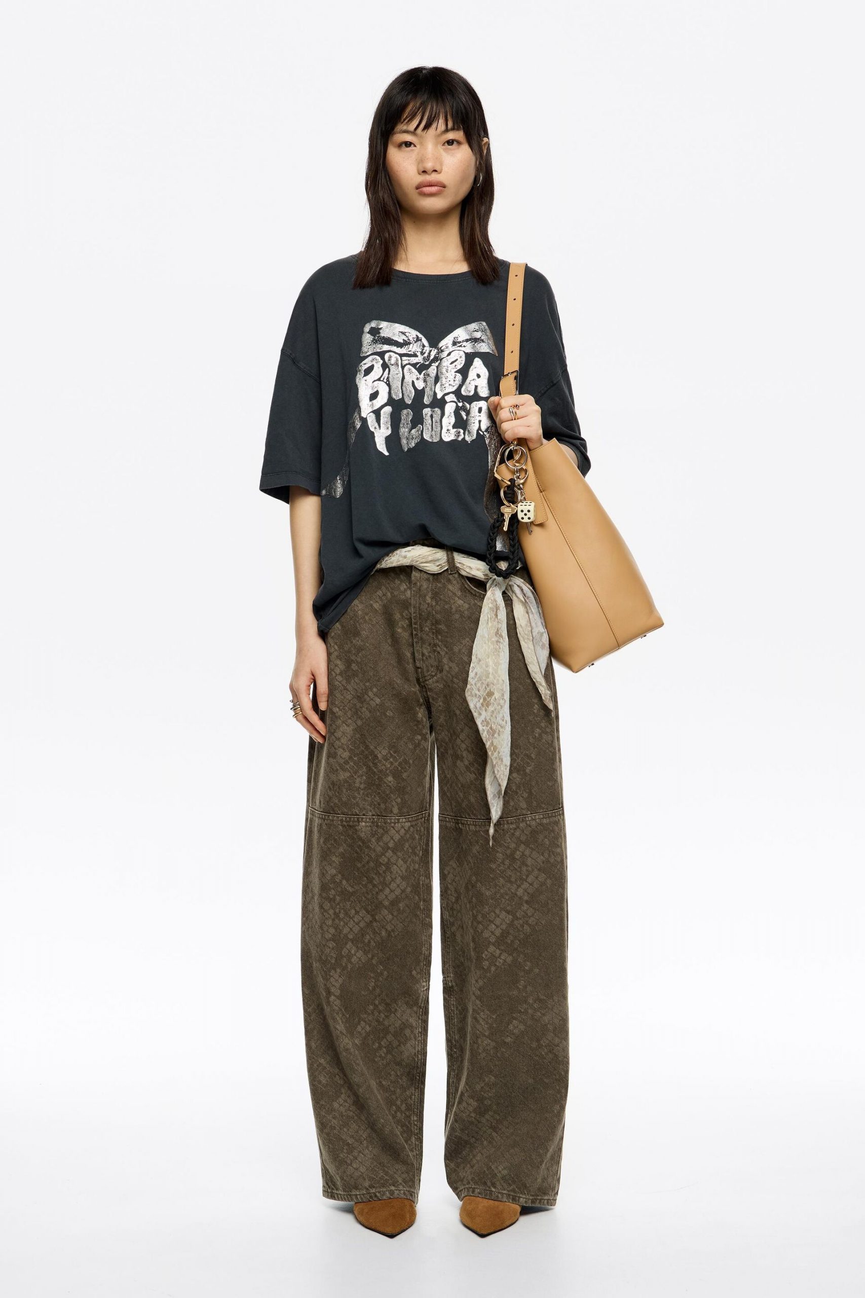 WIDE LEG – Brown Snake Pattern Denim Jeans 3,300.00